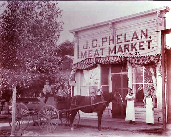 grandpa on wagon in front of store