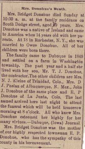 Bridget CONNELL Donahue Dubuque Daily Herald Newspaper Archives November 22, 1893 Page 4 Share this: Click to share on X (Opens in new window) X Click to share on Facebook (Opens in new window) Facebook Like Loading...